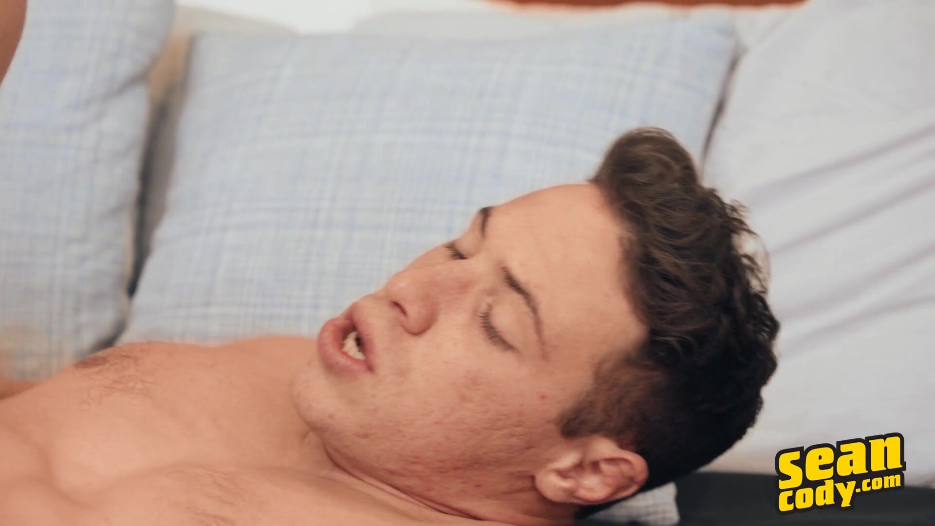 Cute, dark-haired Kyle is really enjoying his makeout session with Sean Cody favorite Josh, and when the guys take their shirts off, he exclaims, "Fuck, you have such a nice body!" Bearded hunk Josh bends Kyle over and eats his hole, then eases his big cock inside. "You want it?" Justin asks. "Oh god, that's so deep," Kyle moans as he takes every inch. He sucks Josh's dick, then rides the top reverse. Josh fucks Kyle doggystyle before turning him on his back, and Kyle strokes himself till he orgasms as he gets penetrated in missionary before Josh pulls out and shoots on his dick.