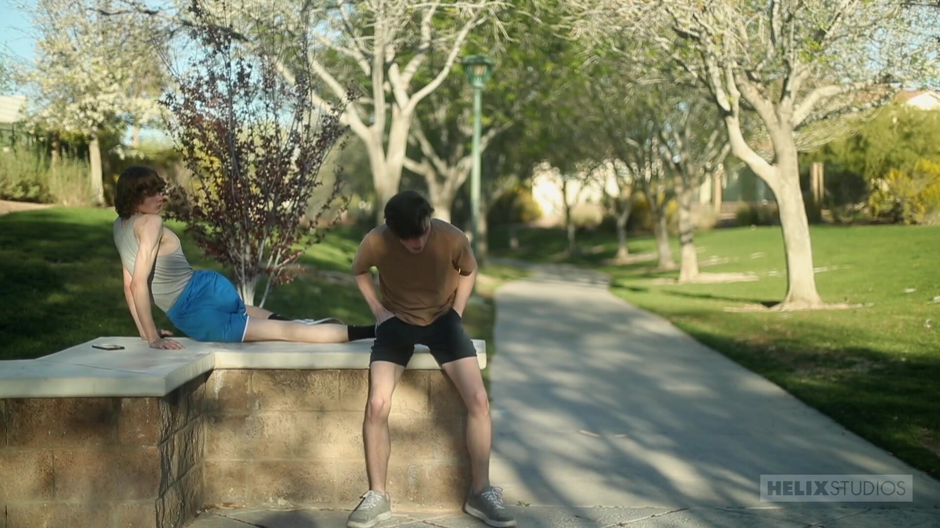 Description: (Models Spikey Dee and Ryder Rockwell). We follow lusty Las Vegas native, and new boy on the scene, Ryder Rockwell as he takes his morning jog around the neighborhood. The tight bodied twenty-three year old is absolutely beautiful, with chiseled bone structure, and blazingly bright blue eyes, which he uses to flirt with naughty neighbor, Spikey Dee. The horny newbie takes a break from his brisk jog right next to neighborhood bad boy Spikey, takes a breather, and bats his beautiful "fuck me" baby blues.