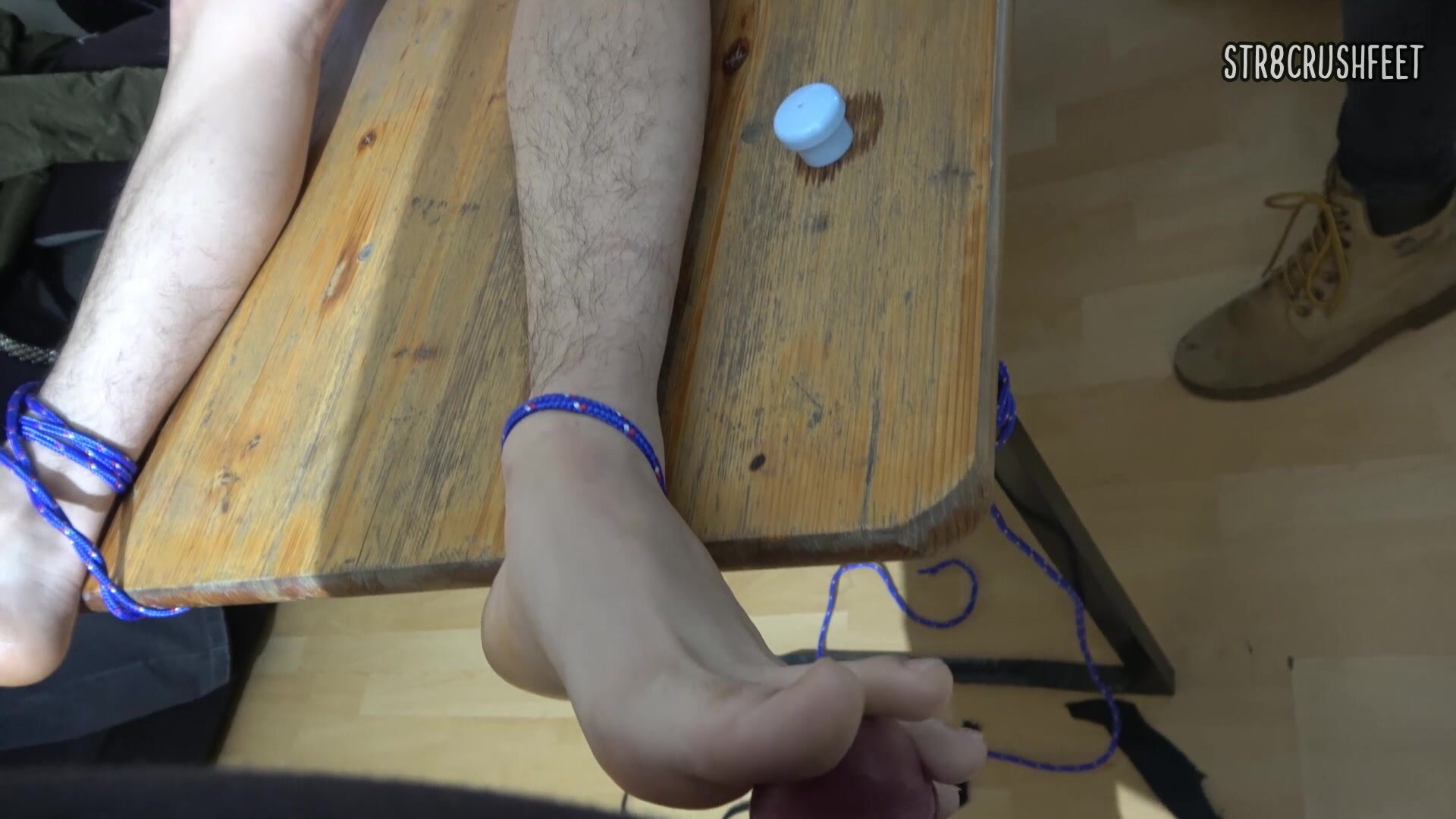 It's my turn to Play with Kent and if he wants us to "Keep" him cough cough, he will have to be collaborative when playing with my dick, at this point he already accepts his destiny, with a little shyness, he places his soft and white soles feet on my dick, I like to see that the ropes match the color of my underwear, enough to ramble, it's time to get into action and fuck this beauty toes, the action lasts for about 10 intense minutes, where I fight for the sensation of emptying my balls on his feet, until I just can't hold back and empty gallons of milk on his beautiful and perfect feet.