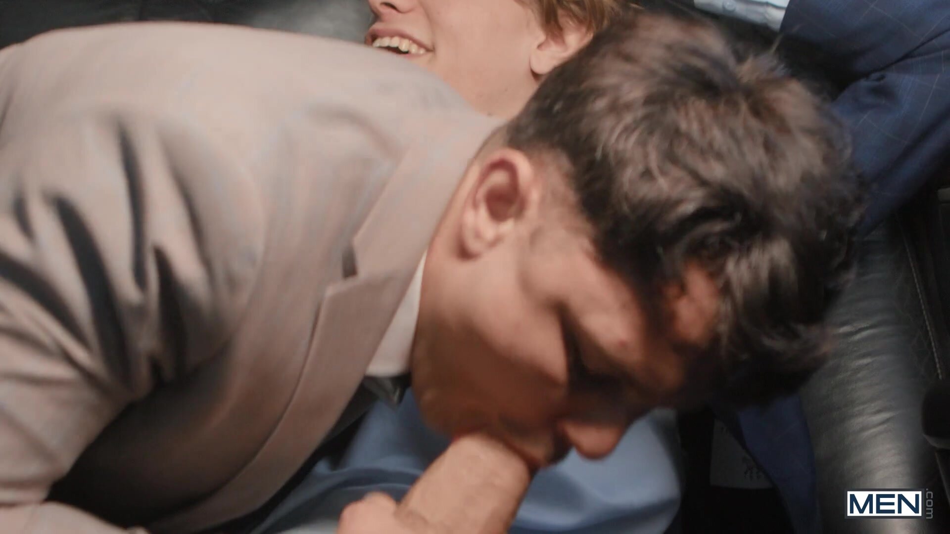 After their little detours with their dates' brother and dad, secret boyfriends Leo Louis and Enzo Muller are finally in the limo with the girls on the way to the prom. After the good music and the party atmosphere make them get a little carried away, the guys start kissing each other and even take their dicks out! The girls bail, and Enzo sucks Leo, then the top rims him before fucking him missionary on the backseat. Enzo rides his blond bf, and Leo pounds his hole, pulling out to cum on the bottom's ass before putting his dick back inside till Enzo cums.