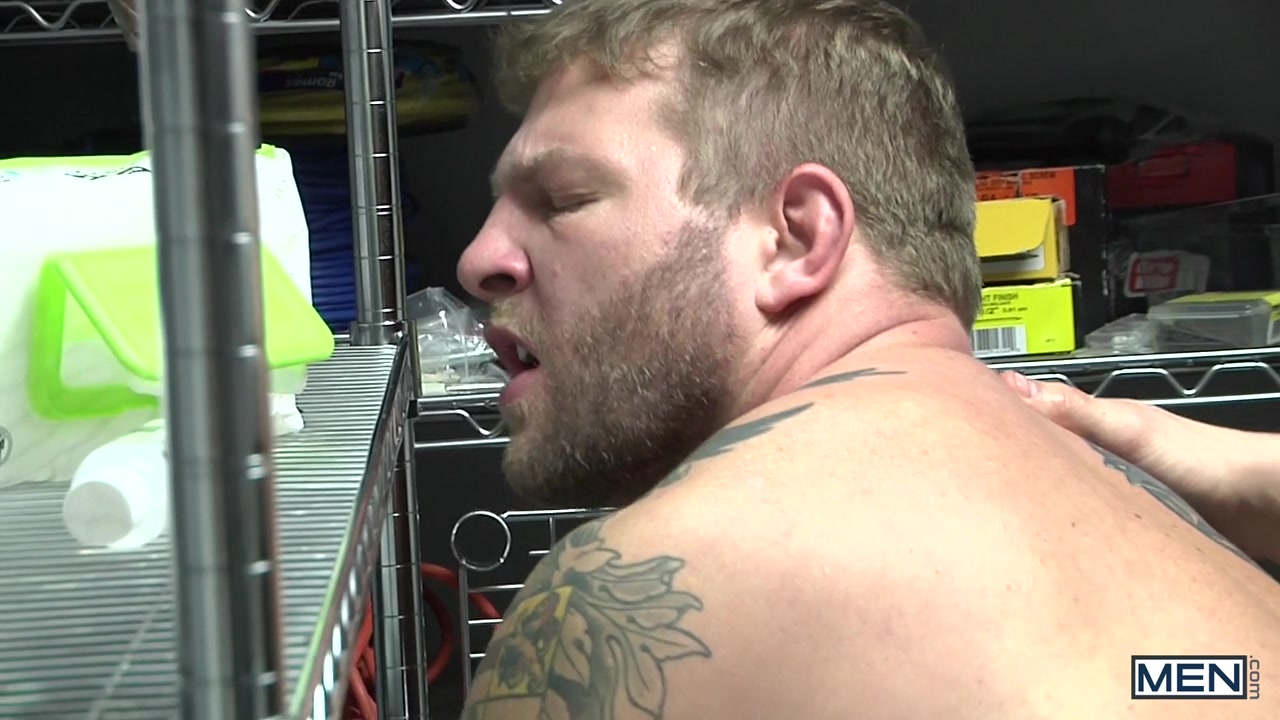 urns out Colby's got a hard on for Darin so he takes him to the janitor's closet where he lathers his fat cock before taking it deep in his hole.