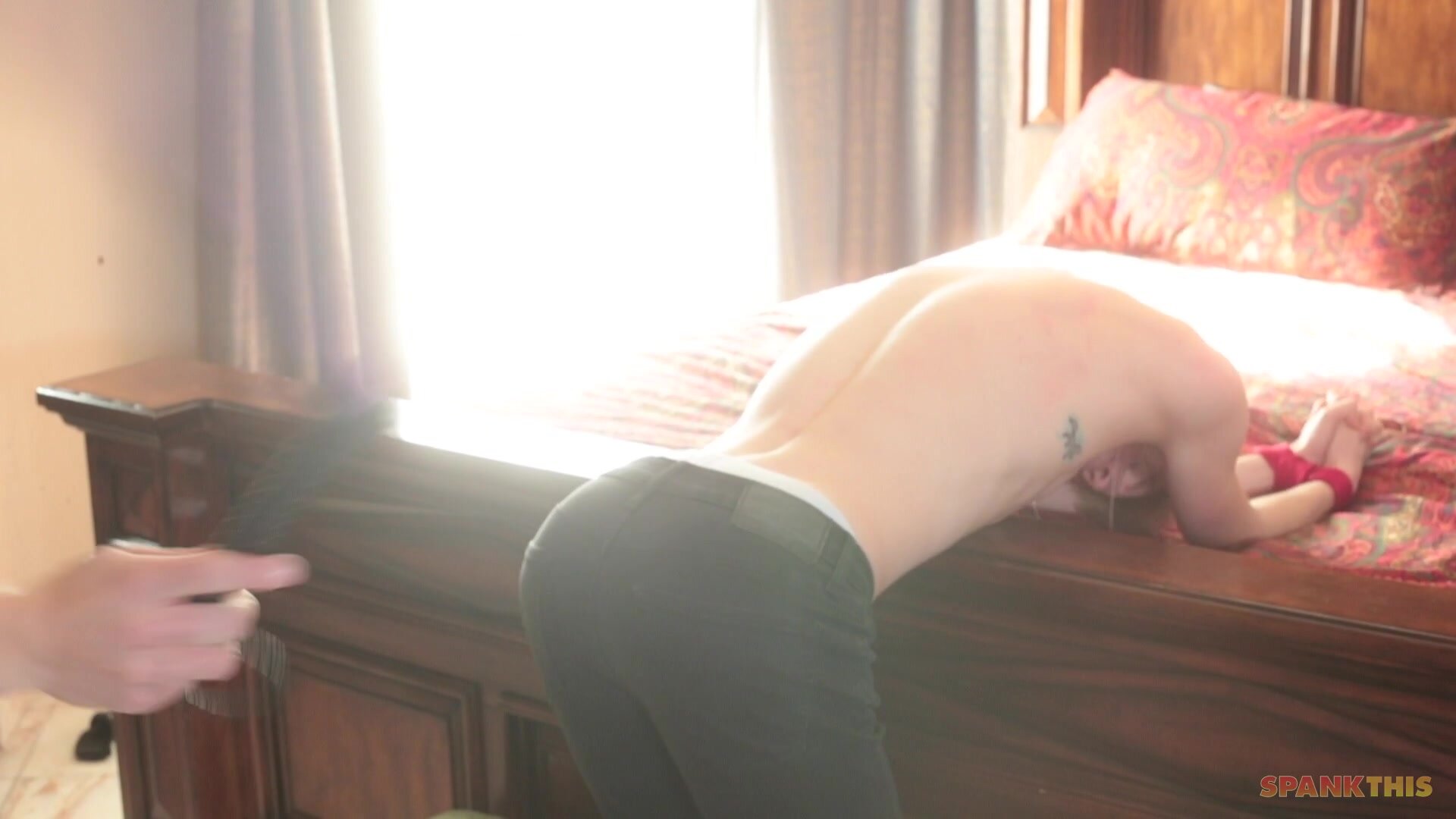 Dedicated disciplinarian, Johnny Hands arrives home after a long flight. Frustrated from flying, he anxiously unzips his carry-on, which contains precious cargo. Curled up into submission, hogtied hottie, Chase Williams uncurls from his confines and bends over the bed at his master’s command. Hands gathers his favorite tools and, gets to work, flogging fuck boy’s backside beautifully. Then, heavy handed Hands unbuckles his boy’s ball gag, allowing sweet sounds of painful pleasure to fill the room; as, he continues to turn the twink’s tail raging red with an open palm. Johnny is relentless, laying back into the boy’s butt with leather lashes till the trail is traceable. Mr. Hands licks his palm; then, counts down the last sweet spankings, leaving Williams panting and plum red.